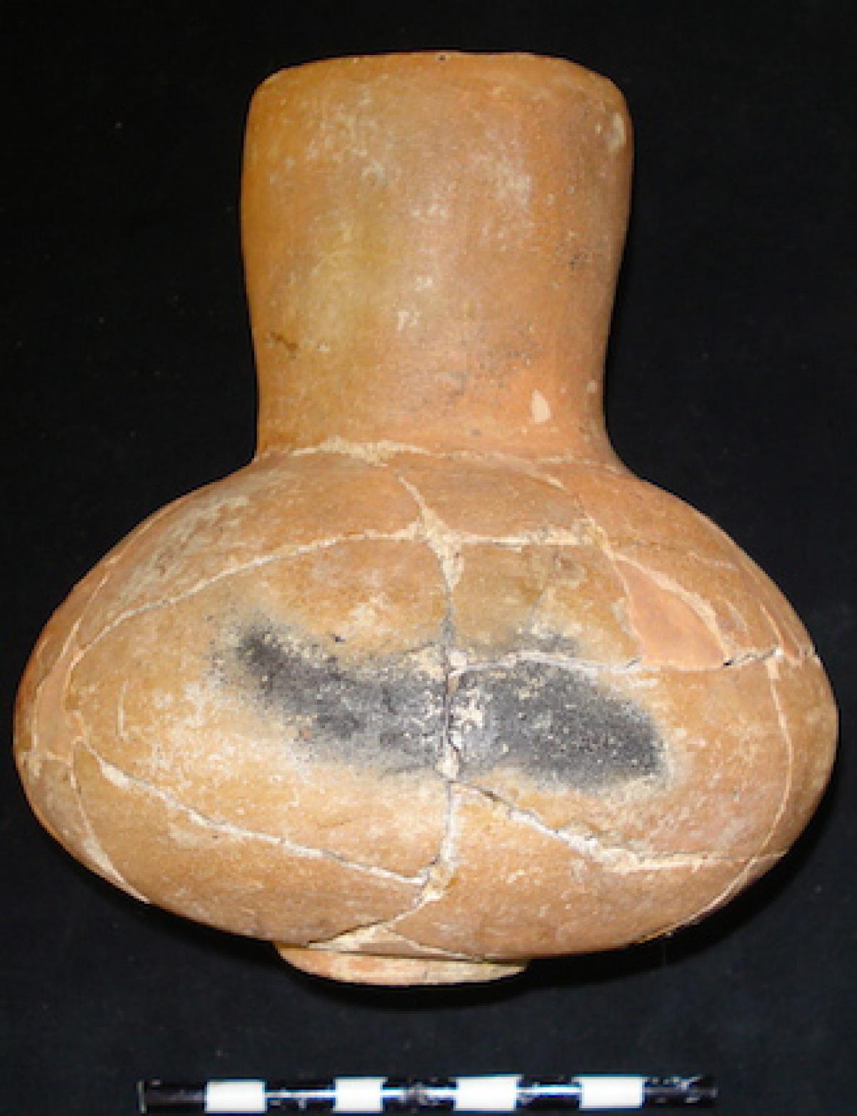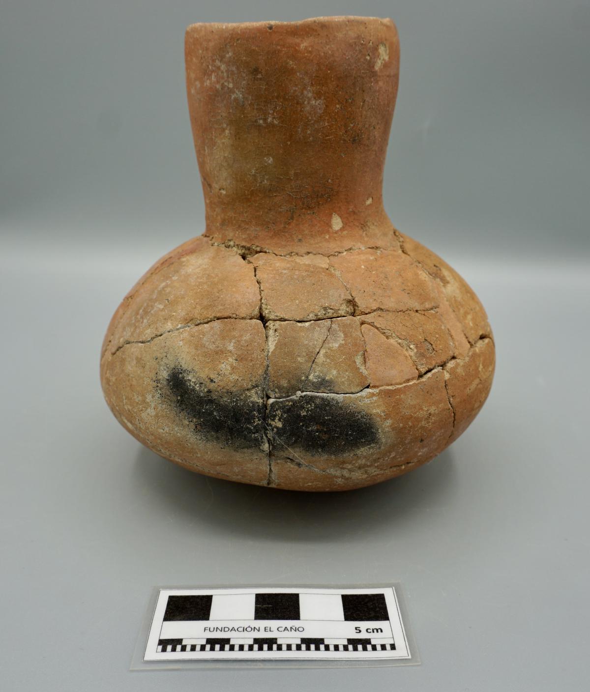 3561 - Jarra globular de cuello largo. Engobe de color rojo
