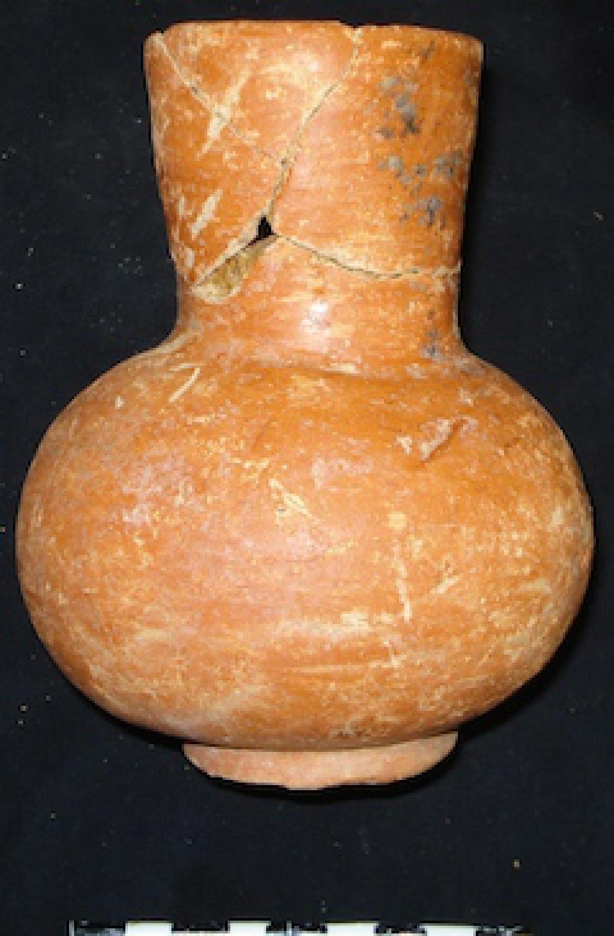3561 - Jarra globular de cuello largo. Engobe de color rojo