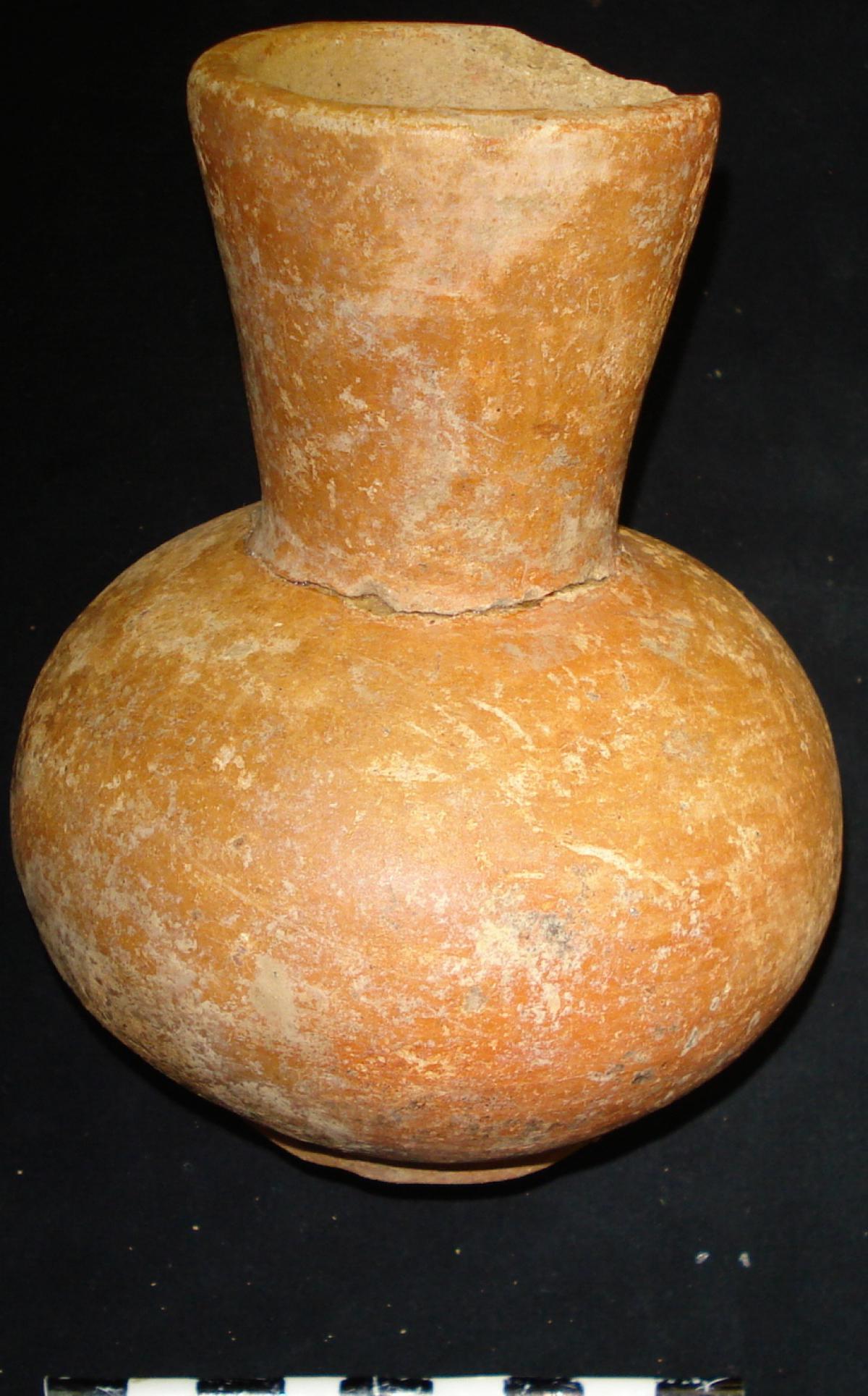3561 - Jarra globular de cuello largo. Engobe de color rojo