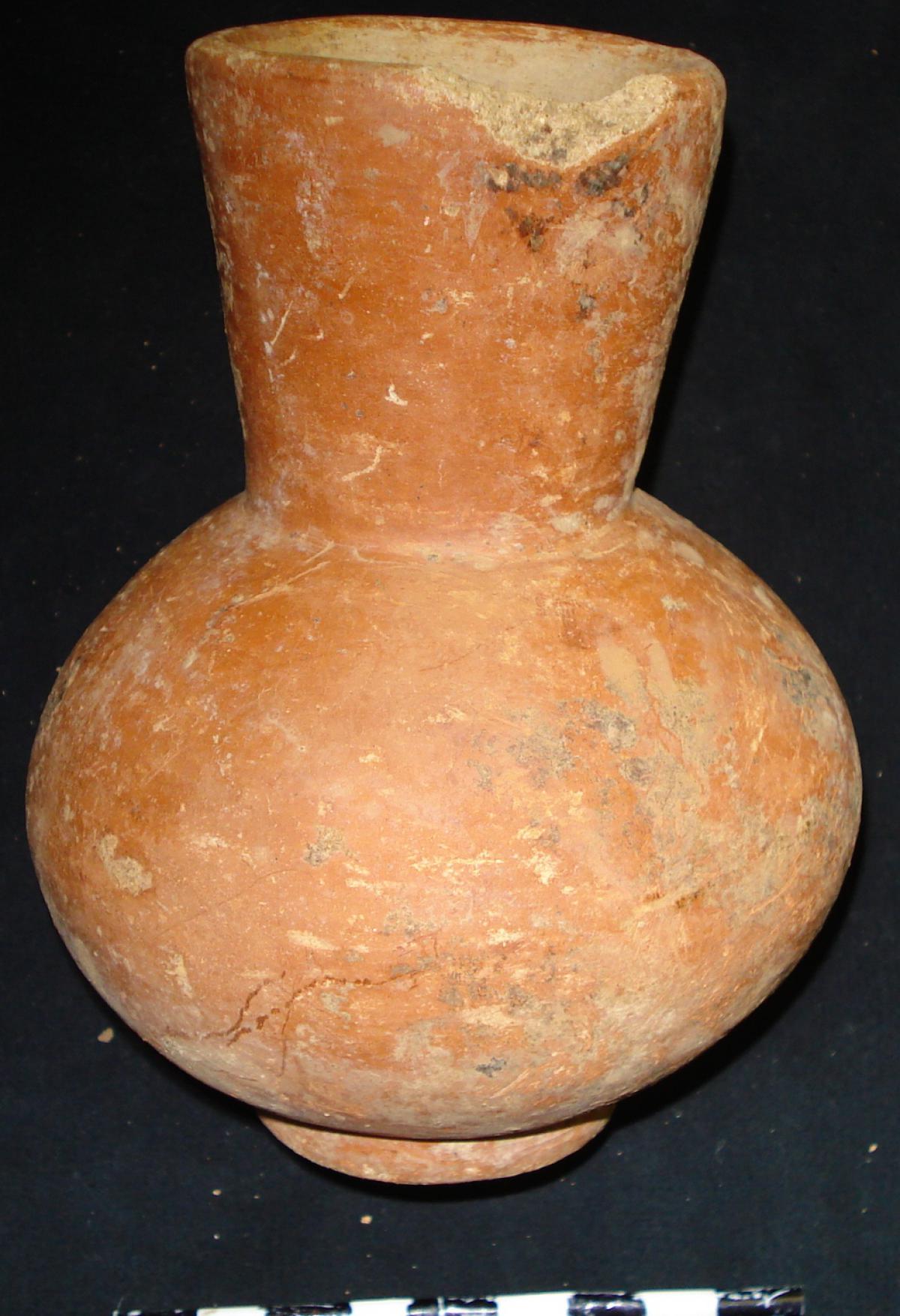3561 - Jarra globular de cuello largo. Engobe de color rojo