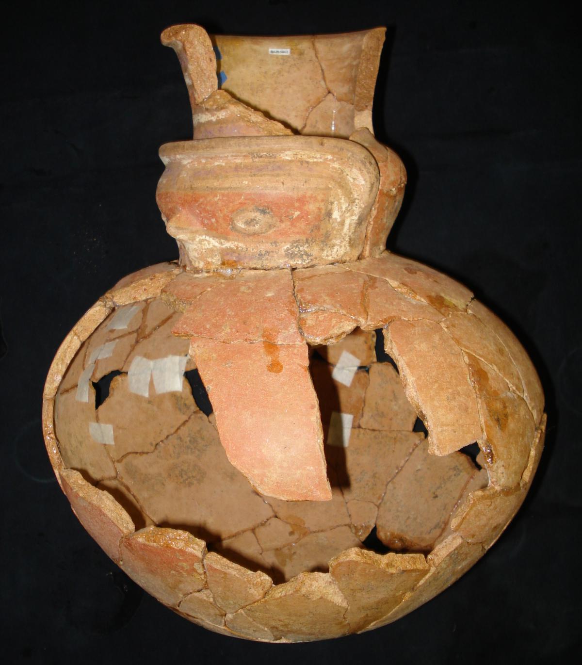 Desde aquí se puede acceder a la unidad estratigráfica (UE), o a las sub-secciones de la misma, en donde se recuperó este artefacto cerámico.Ofrenda colocada sobre una plataforma vegetal.