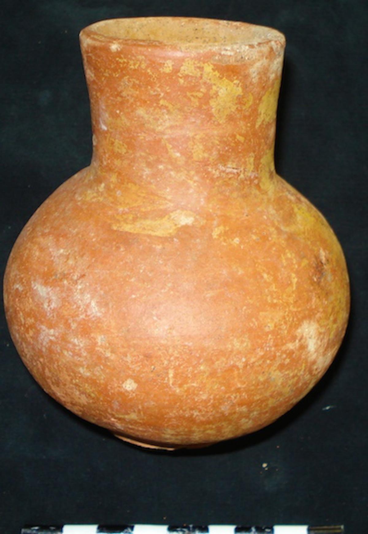 3561 - Jarra globular de cuello largo. Engobe de color rojo
