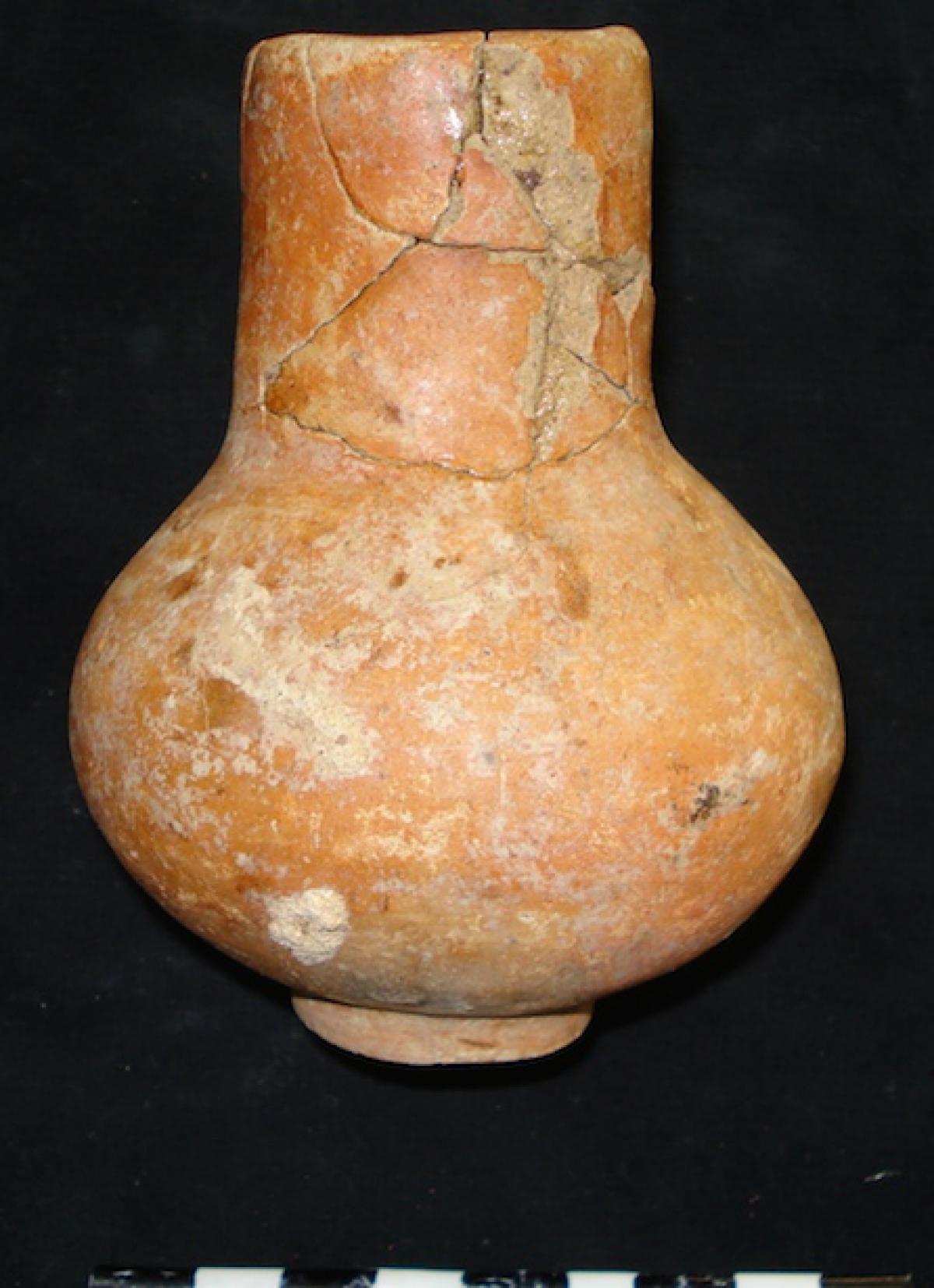 3561 - Jarra globular de cuello largo. Engobe de color rojo