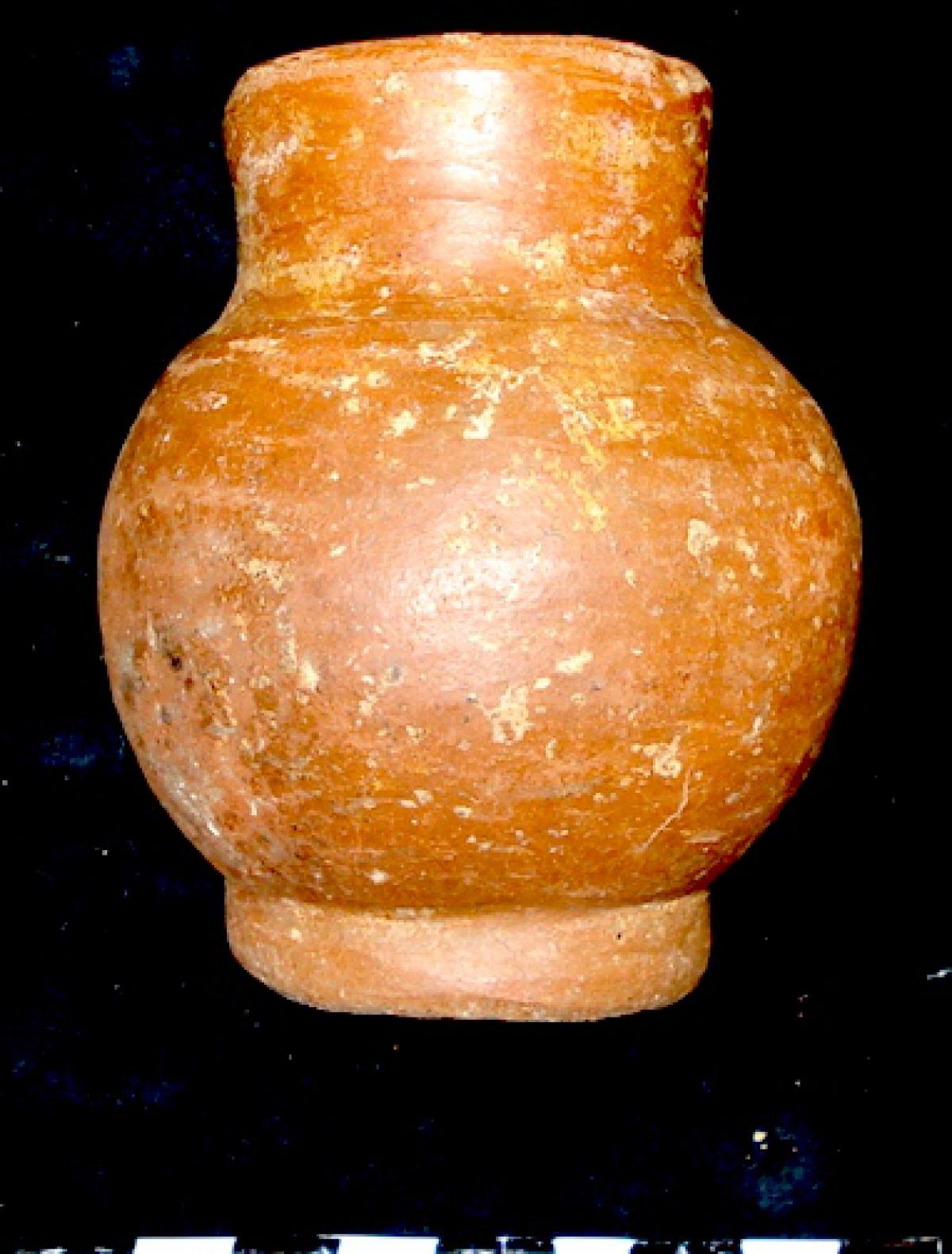 3632 - “Jarra globular de pasta roja plena, con base anular, borde recto y cuello corto