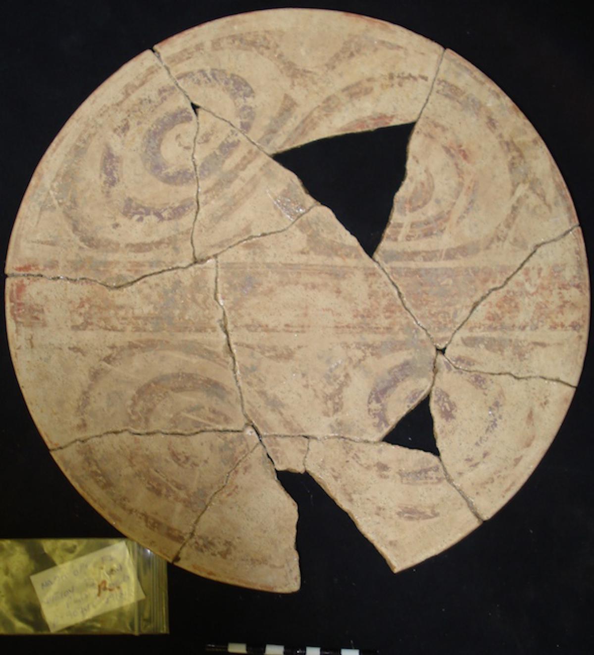 Fragmentos de este plato se han encontrado en la unidad de entierro 136.