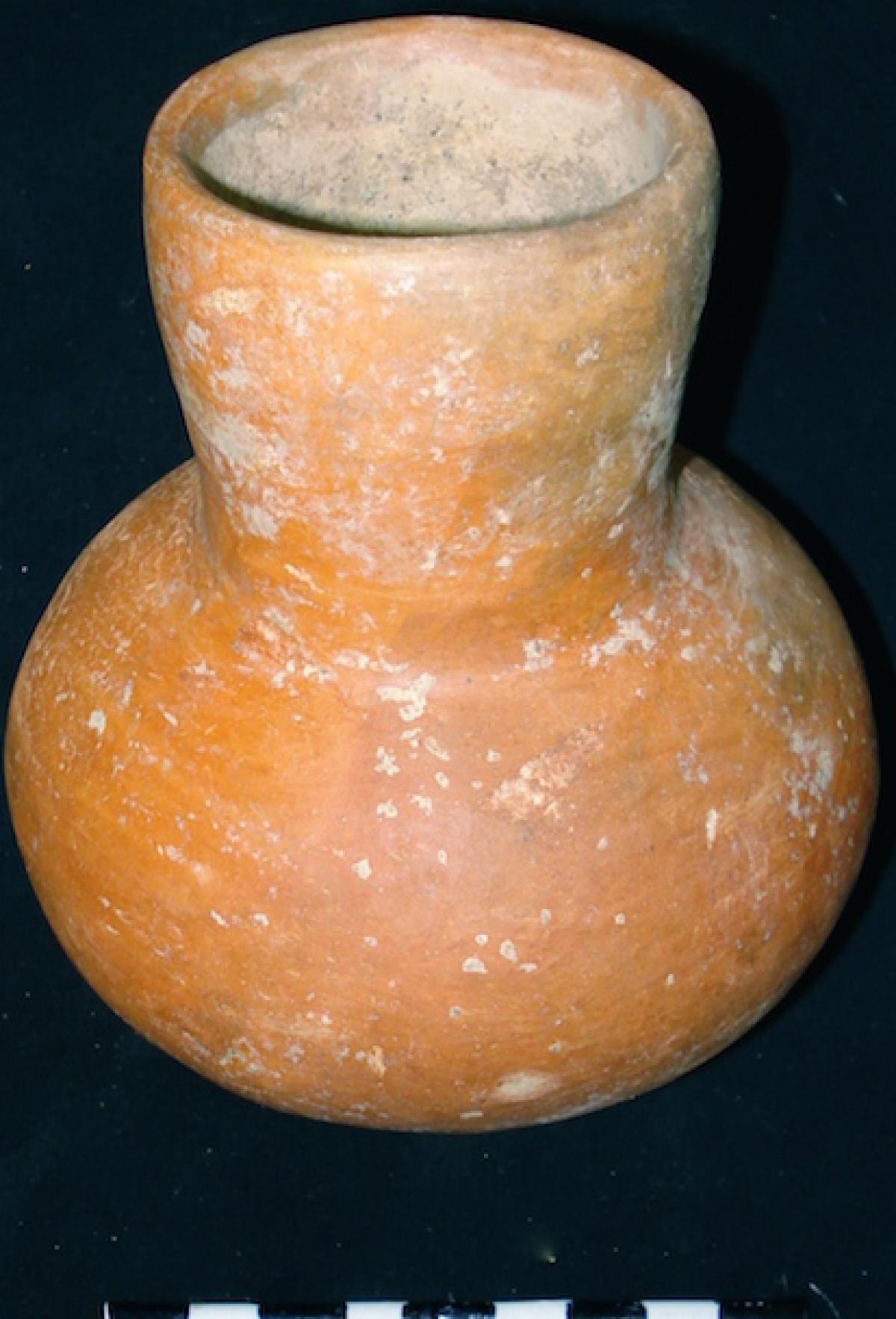 3561 - Jarra globular de cuello largo. Engobe de color rojo