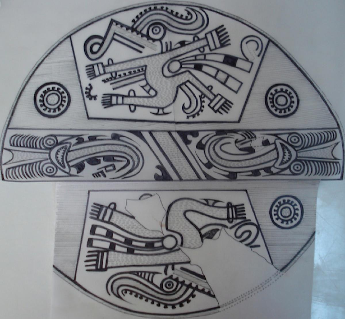 389 - Pectoral discoidal de oro repujado con la representación de un ser sobrenatural híbrido de calamar y ave. Grupo metalúrgico Conte. La figura del calamar, que es la más inmediata, ...