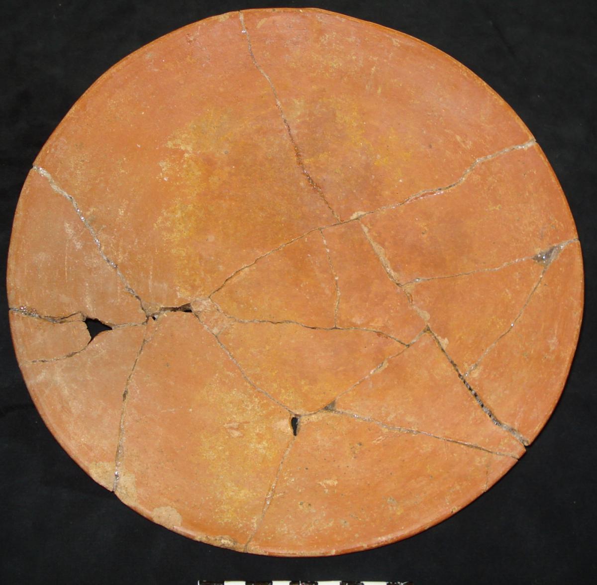 3568 - Pedestal bajo bicónico de engobe rojo y borde redondeado