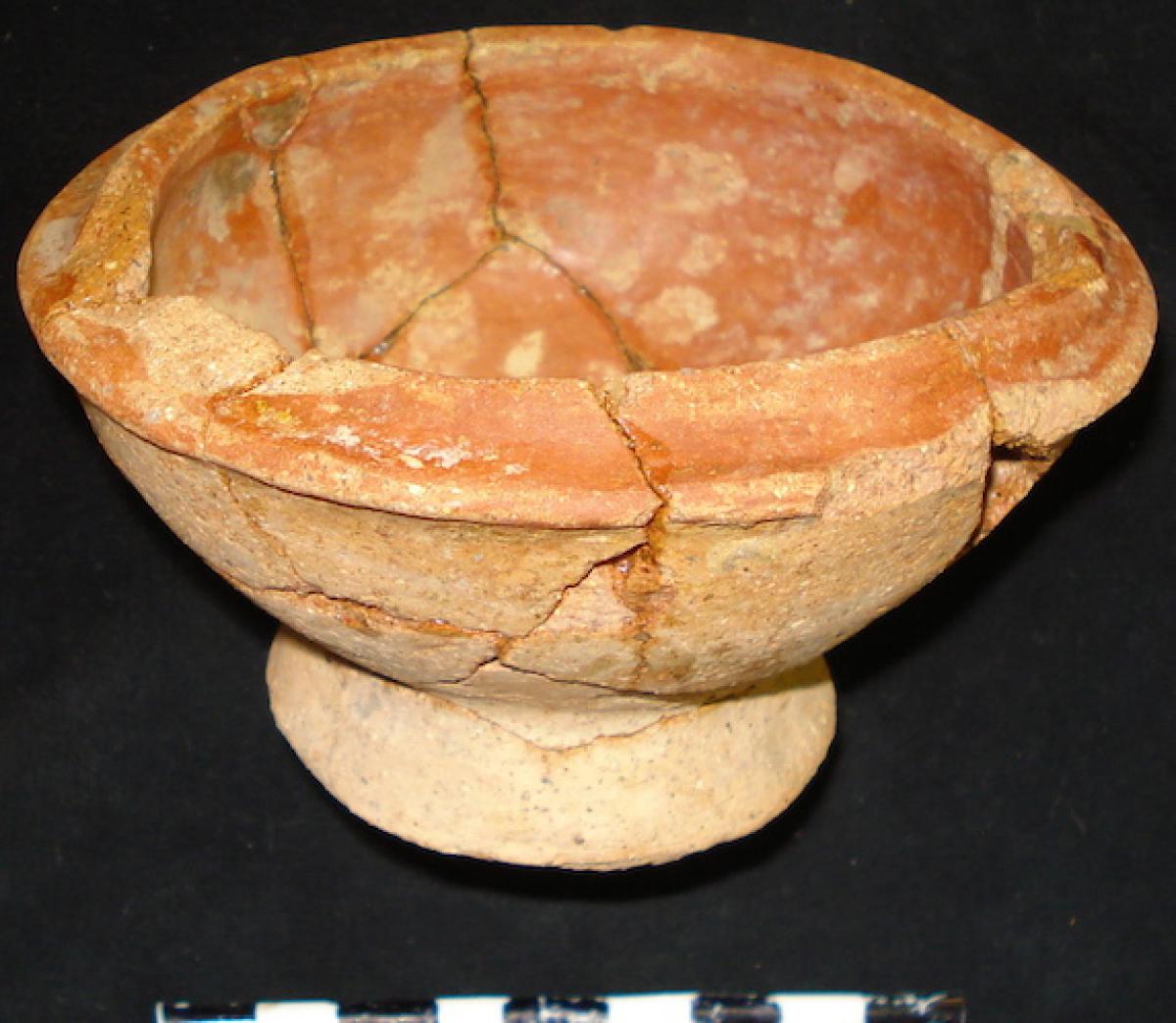 3568 - Pedestal bajo bicónico de engobe rojo y borde redondeado