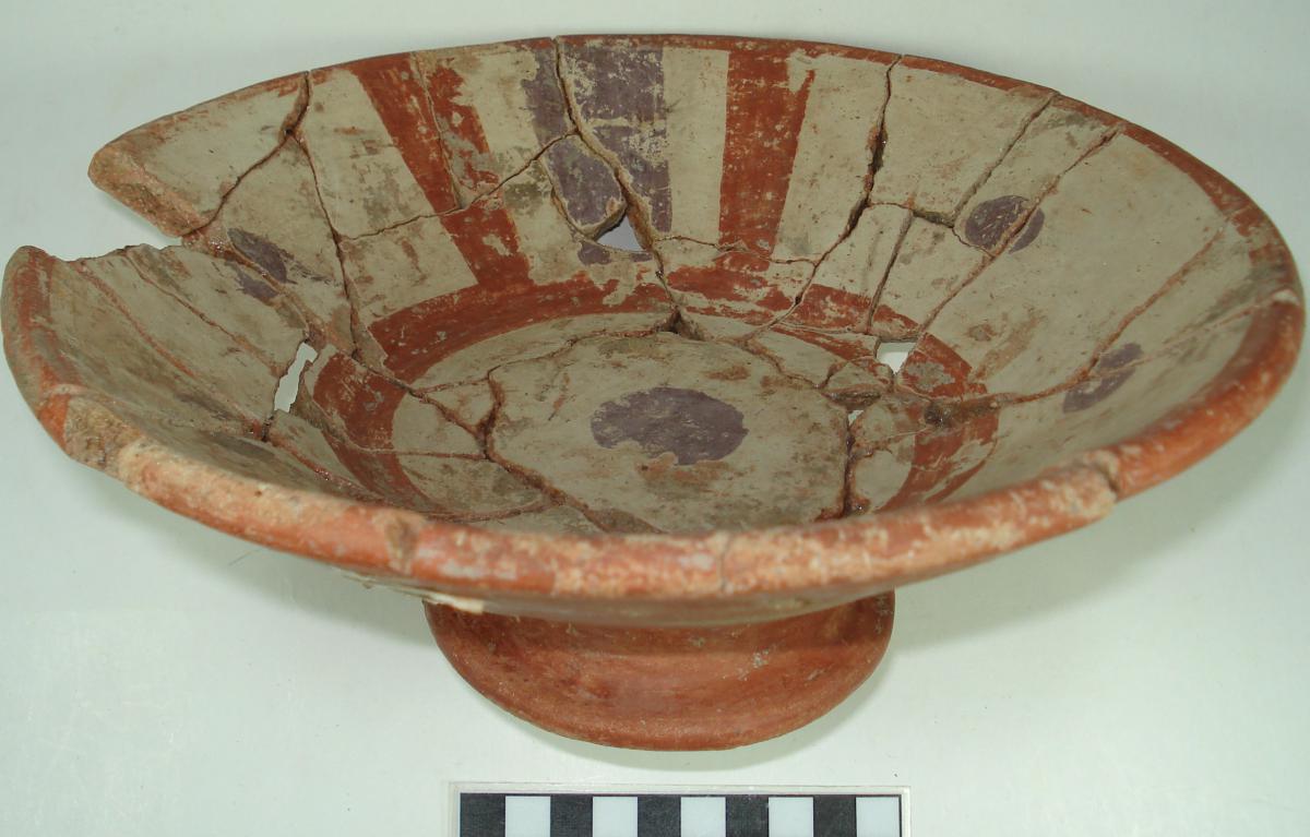 3568 - Pedestal bajo bicónico de engobe rojo y borde redondeado