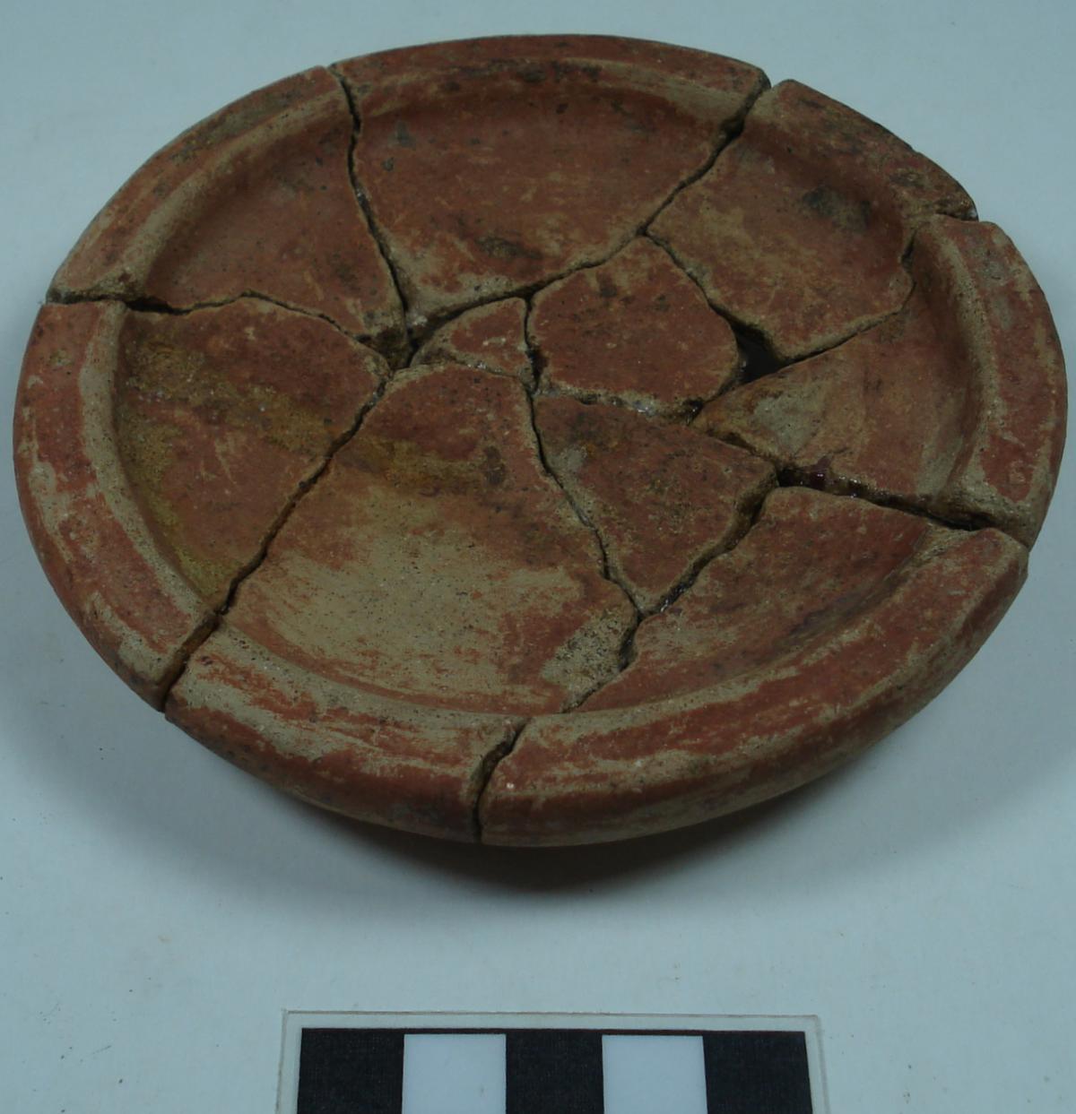 3568 - Pedestal bajo bicónico de engobe rojo y borde redondeado
