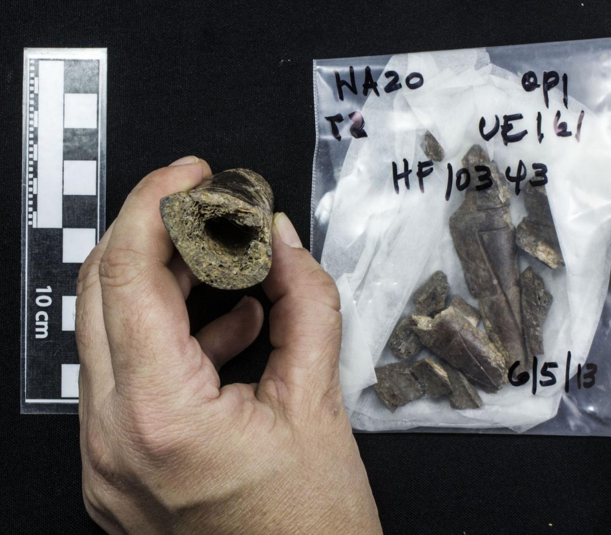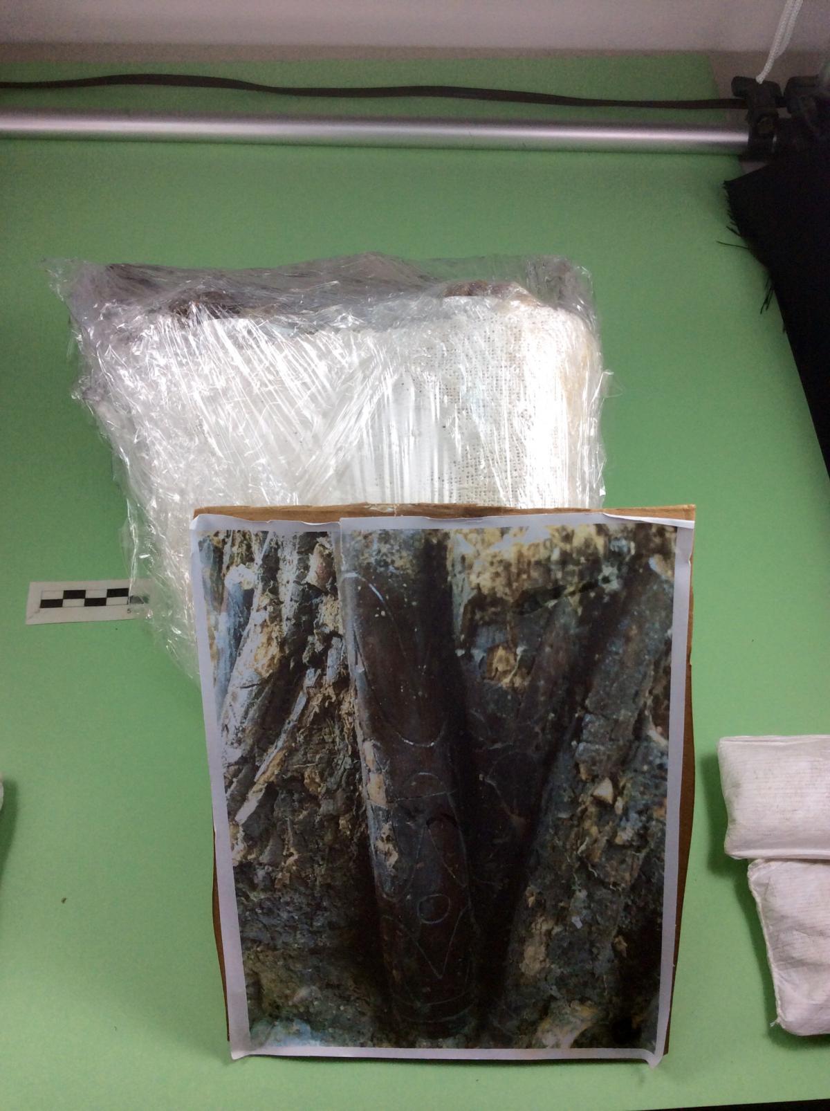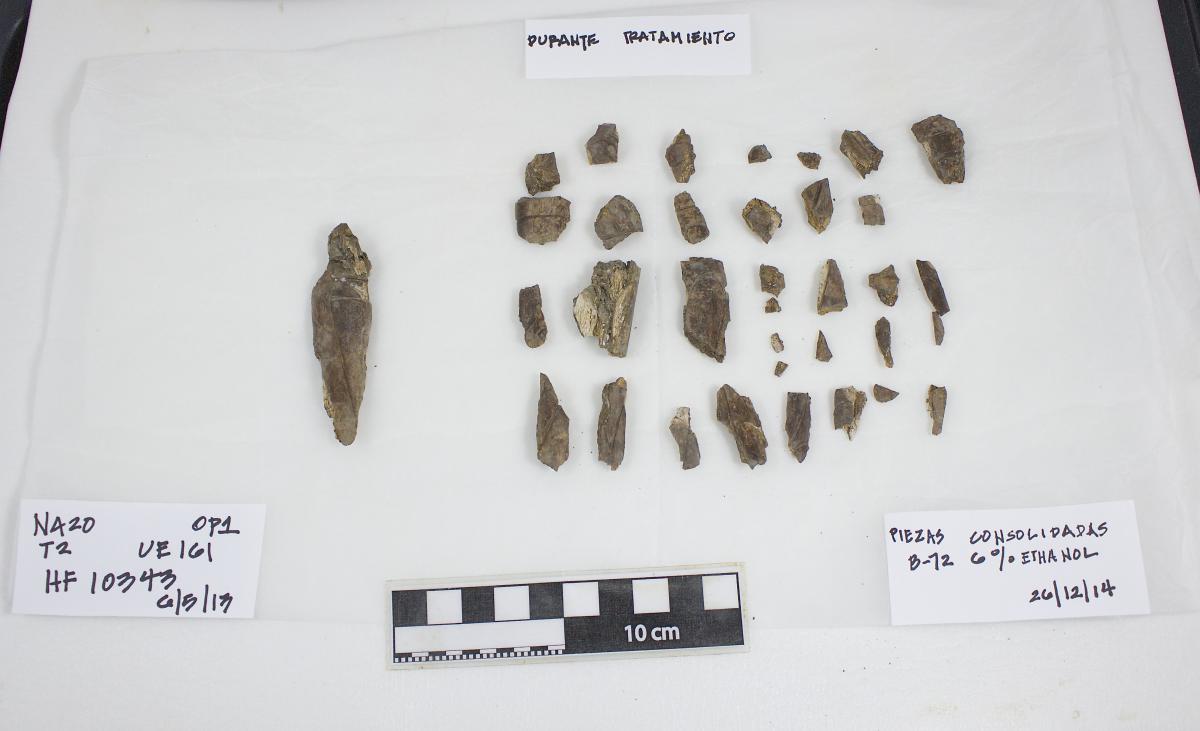 Hueso pre-conservado/ con nuevo fragmento añadido.