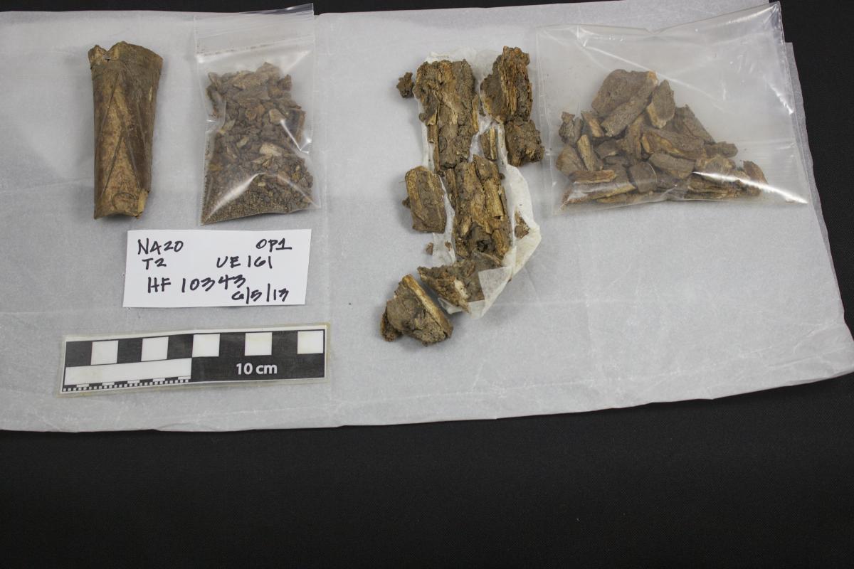 381 - T6-UE125 (a , (llamado en el año 2013, unidad UE167).Entierro de la tumba T6. Depósito de huesos humanos en posición primaria localizado a 3,48 m de profundidad. Es un entierro múltiple...