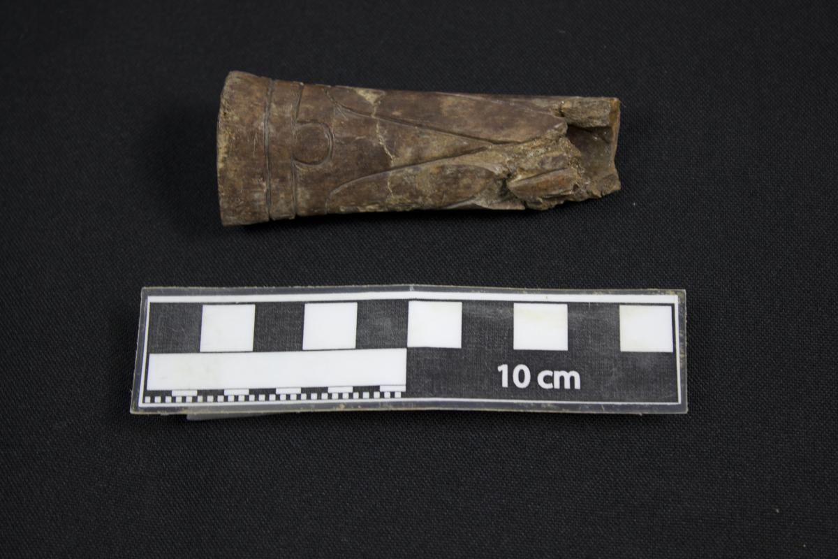 3606 - Hueso metapodiano trabajado de felino, parcialmente restaurado.