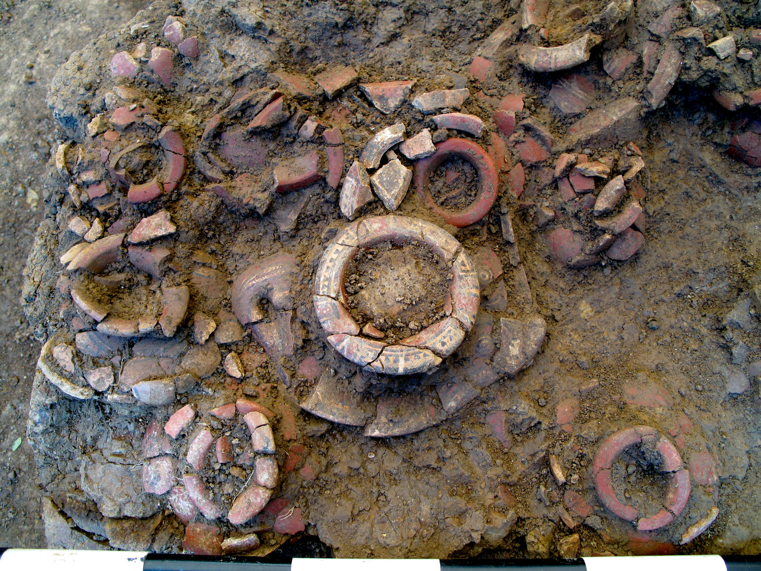 381 - T6-UE125 (a , (llamado en el año 2013, unidad UE167).Entierro de la tumba T6. Depósito de huesos humanos en posición primaria localizado a 3,48 m de profundidad. Es un entierro múltiple...