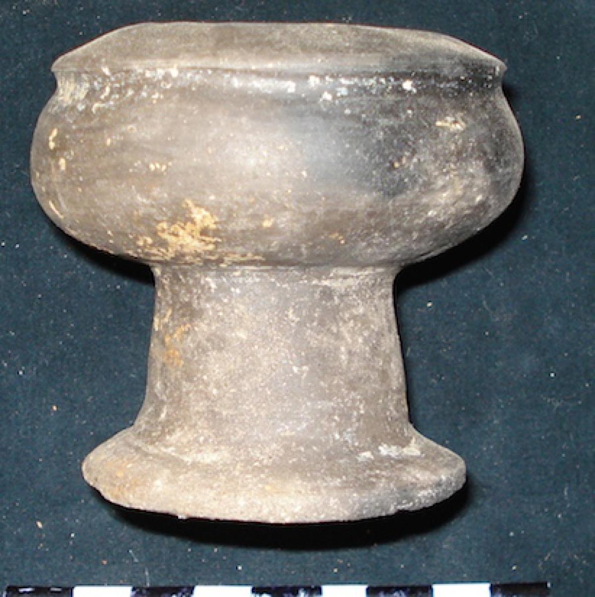3568 - Pedestal bajo bicónico de engobe rojo y borde redondeado