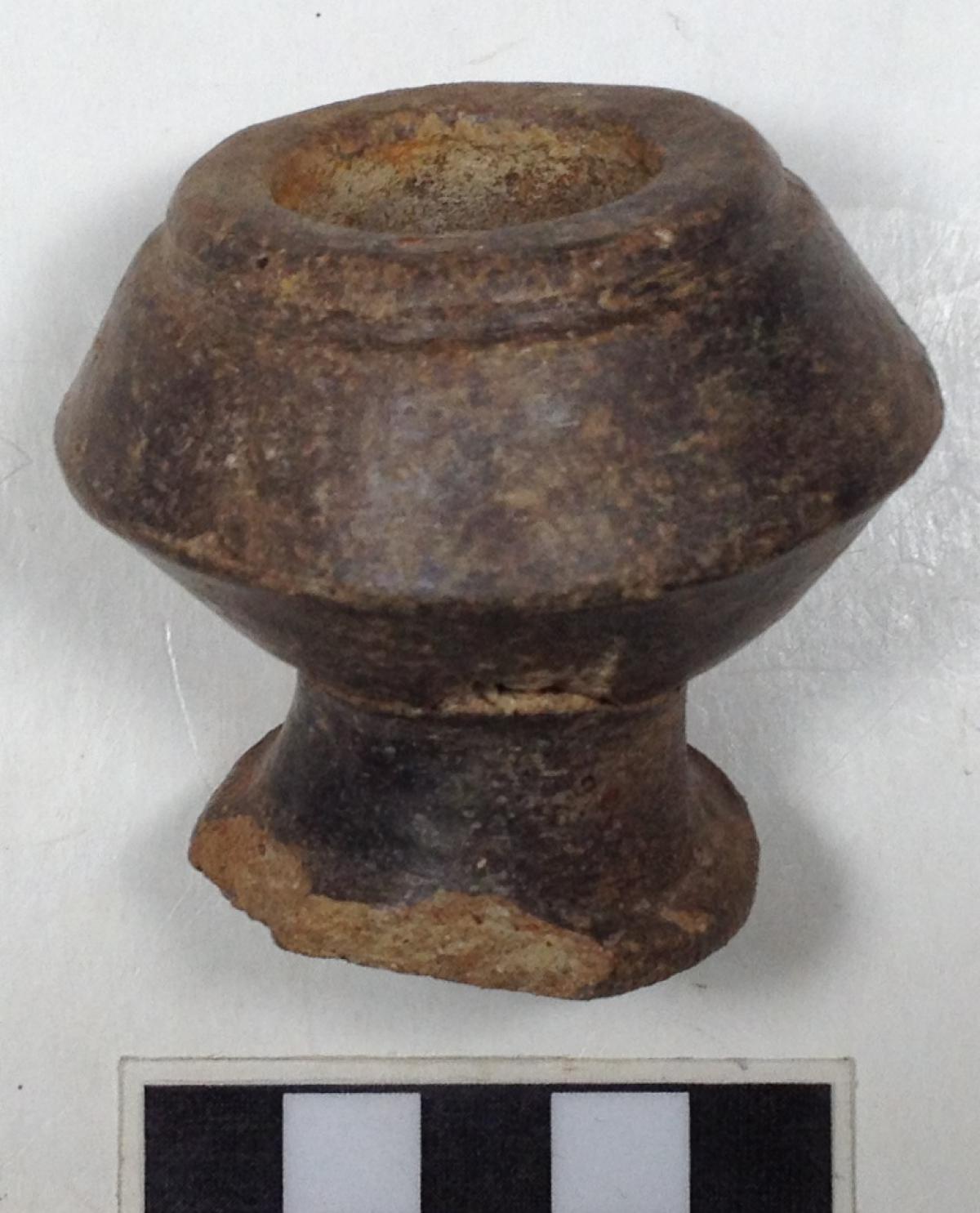 3568 - Pedestal bajo bicónico de engobe rojo y borde redondeado