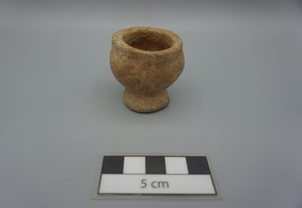 3568 - Pedestal bajo bicónico de engobe rojo y borde redondeado