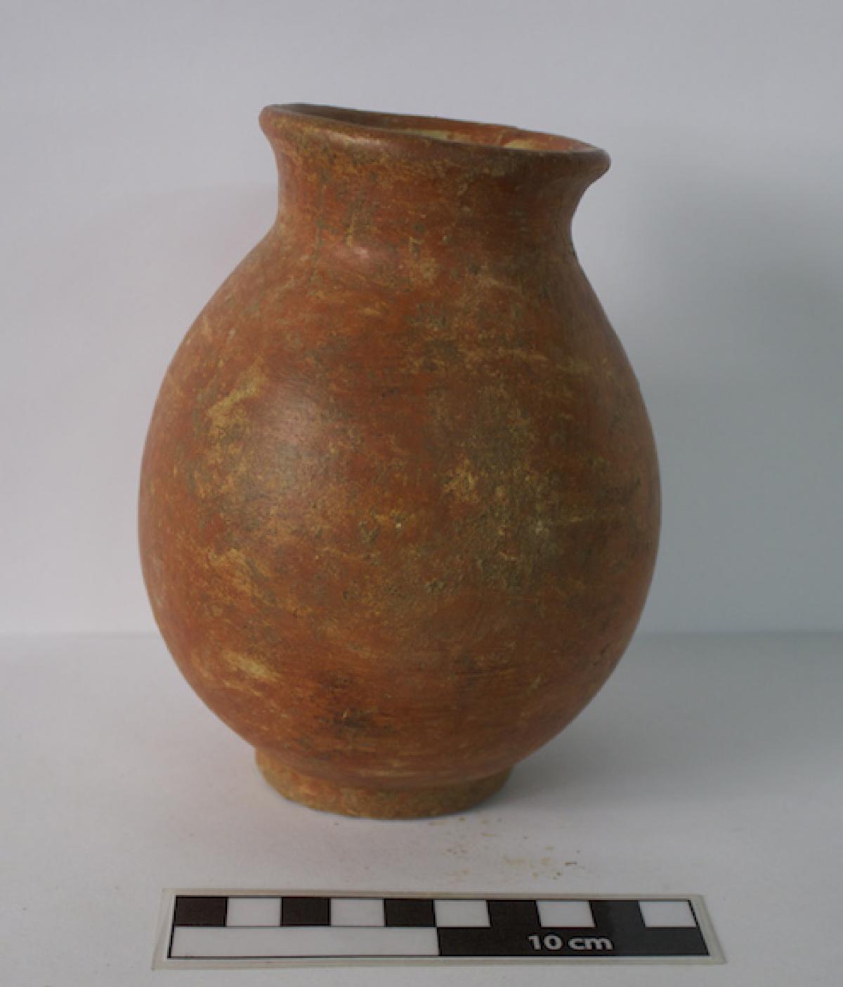 3561 - Jarra globular de cuello largo. Engobe de color rojo