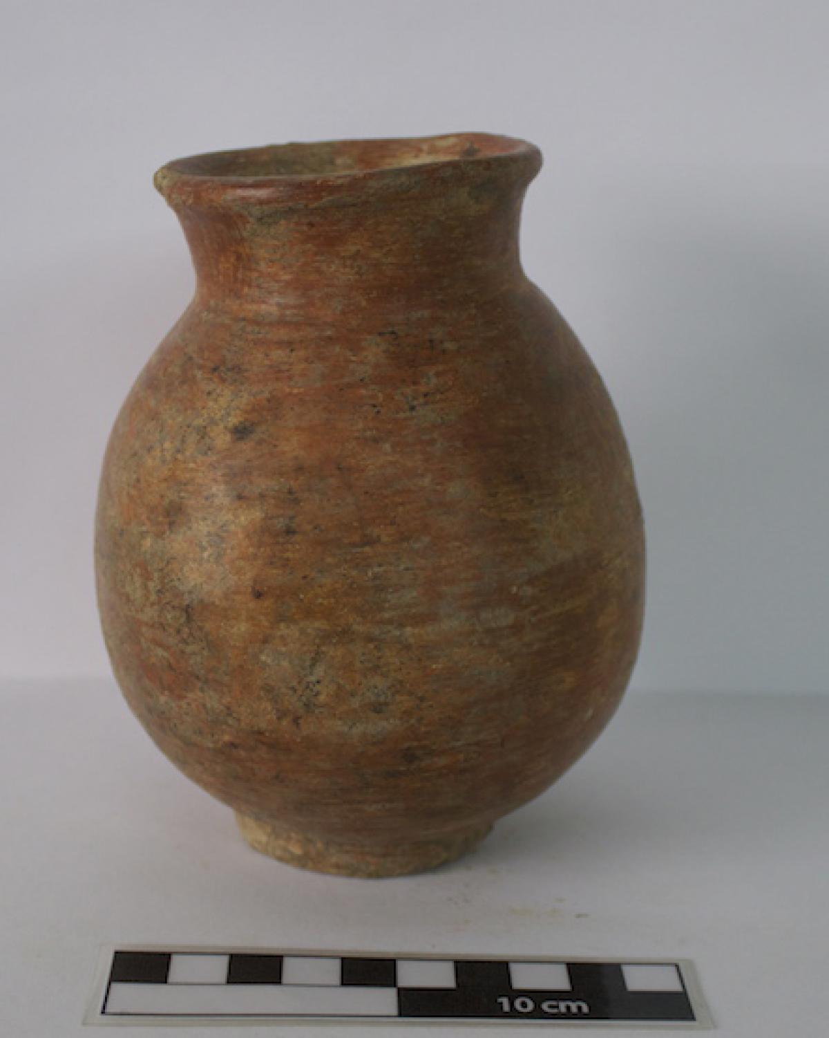 3561 - Jarra globular de cuello largo. Engobe de color rojo