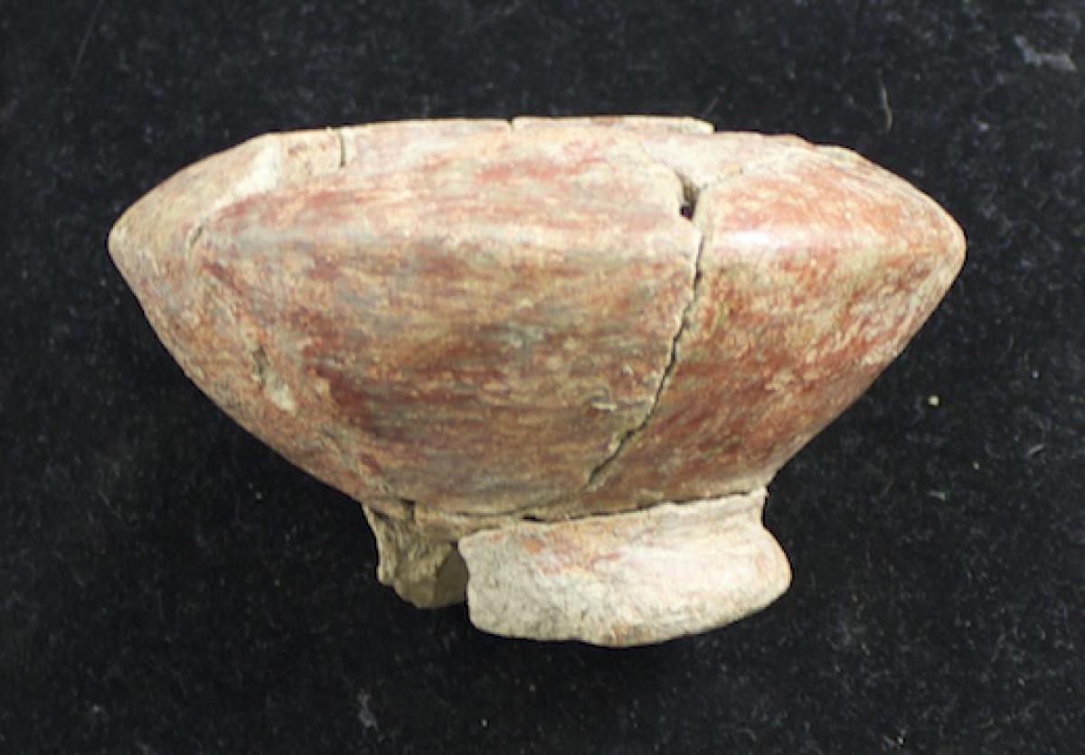 3568 - Pedestal bajo bicónico de engobe rojo y borde redondeado