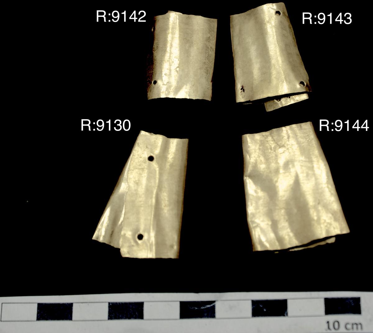 Conjunto de brazaletes de oro del ajuar del individuo I20 de la tumba T2 del que formaba parte el 9144.