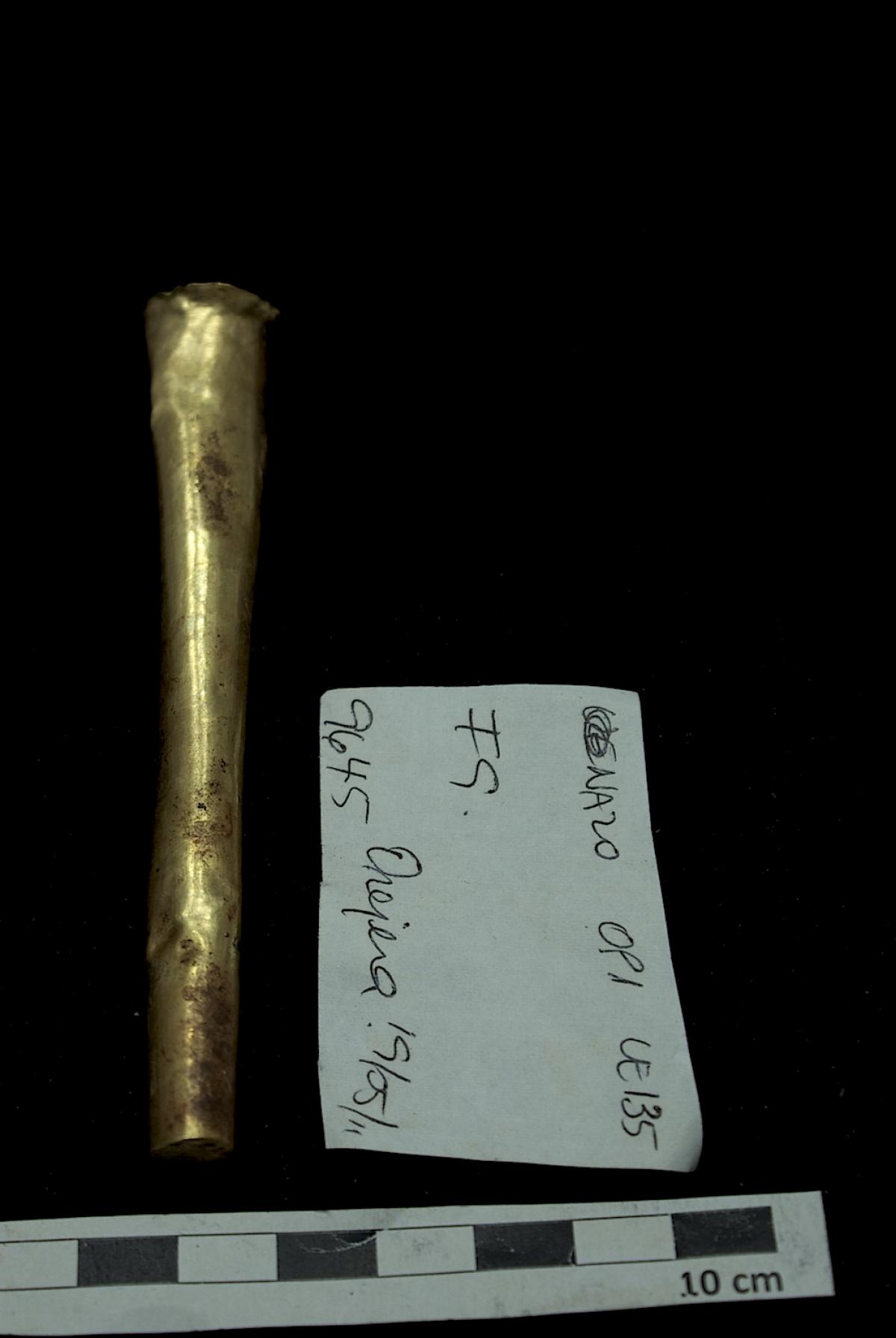 Orejera tubular de oro.