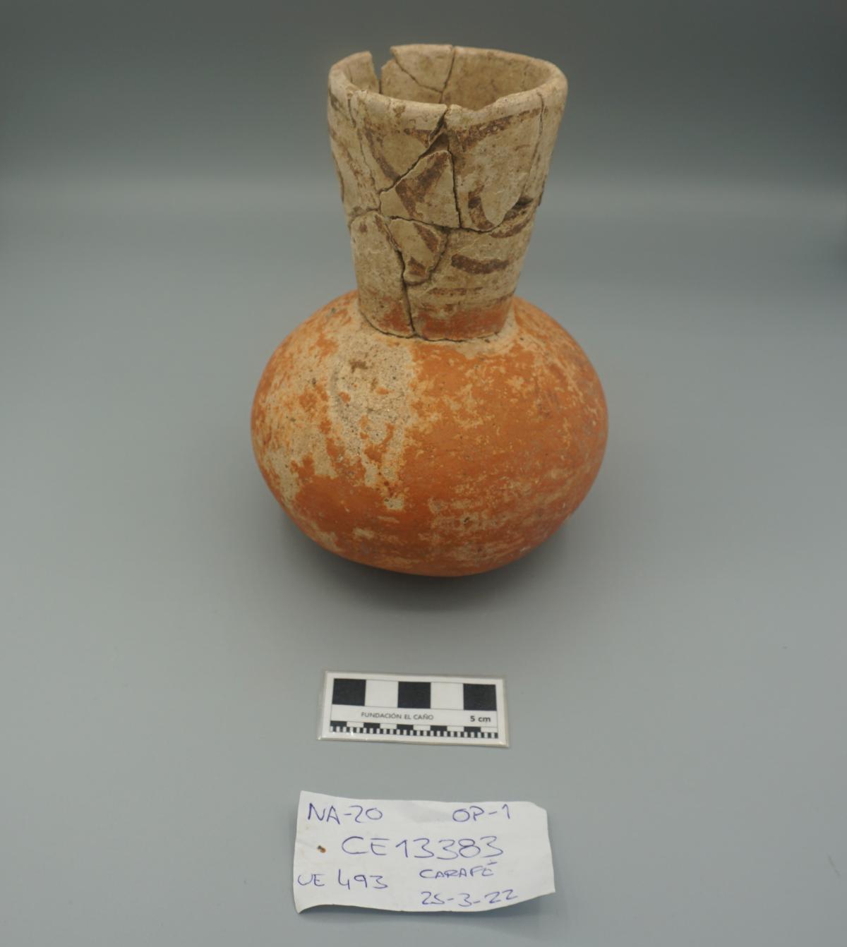 Jarra globular de cuello largo.